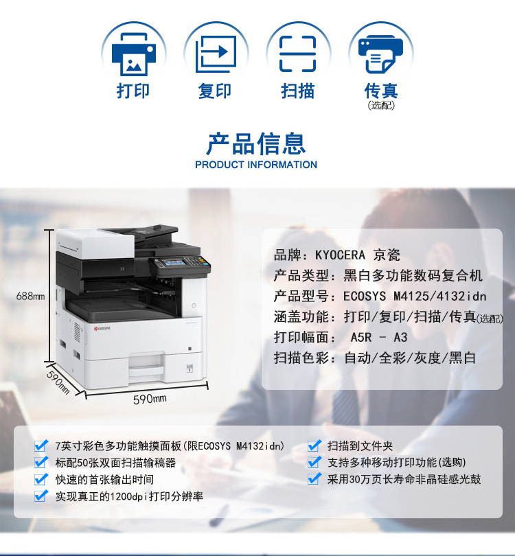 京瓷(KYOCERA)ECOSYS M4125idn黑白数码复合机
