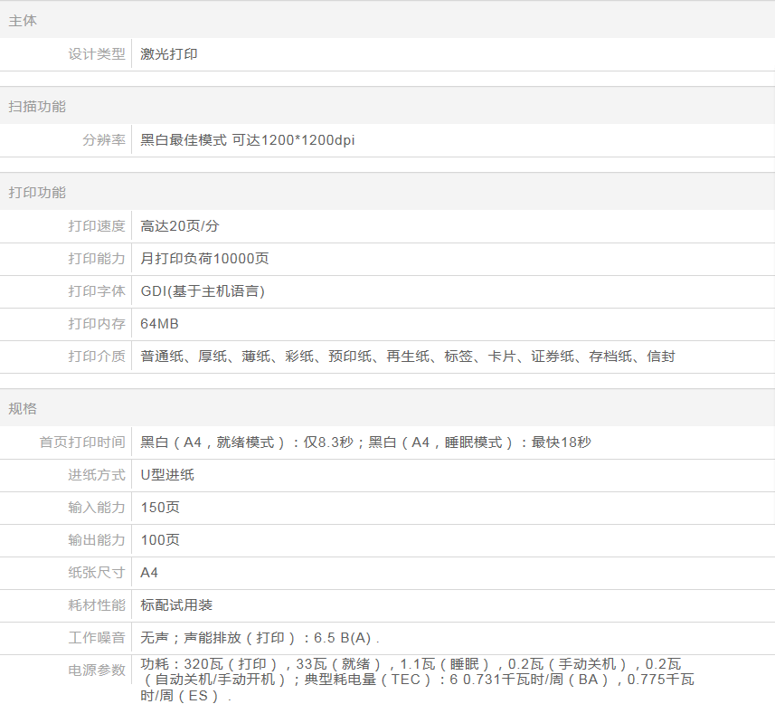 黑白激光打印机